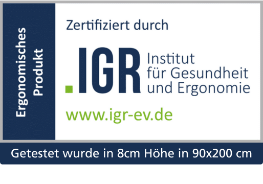 Der Deluxe 7-Zonen Gelschaum Topper ist vom Institut für Ergonomie und Gesundheit als ergonomisches Produkt ausgezeichnet. Außerdem ist der Topper OEKO-TEX Standard 100 zertifiziert (19.0.86717 Hohenstein HTTI). Alle verarbeiteten Materialien sind auf Schadstoffe geprüft und für Allergiker geeignet.