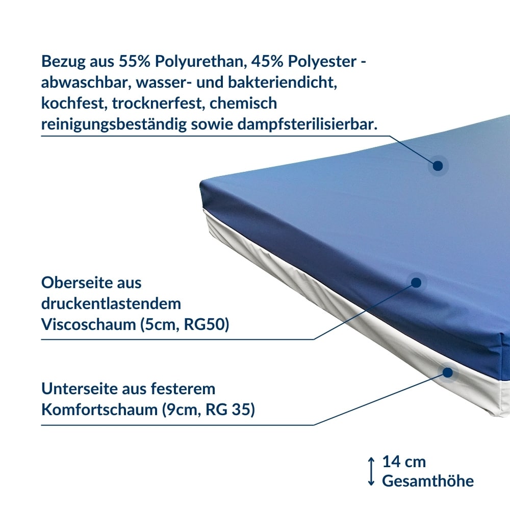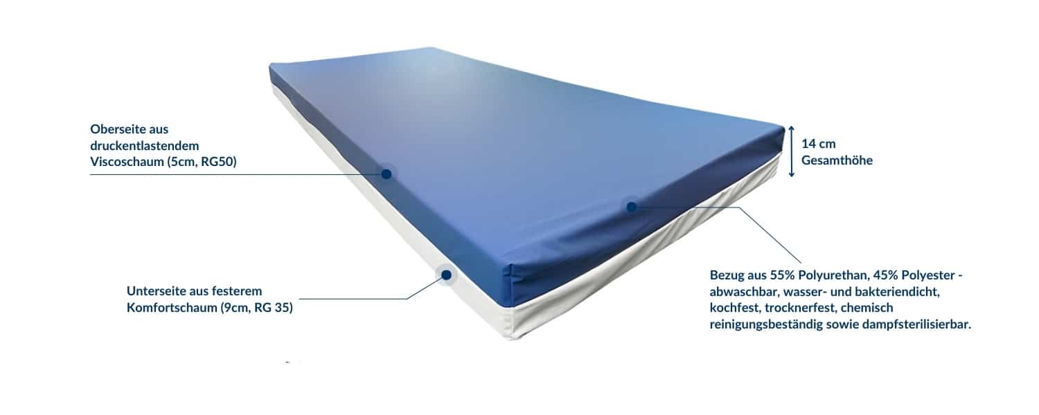 - Oberseite: 5 cm druckentlastender Visco-Schaum (RG 50)