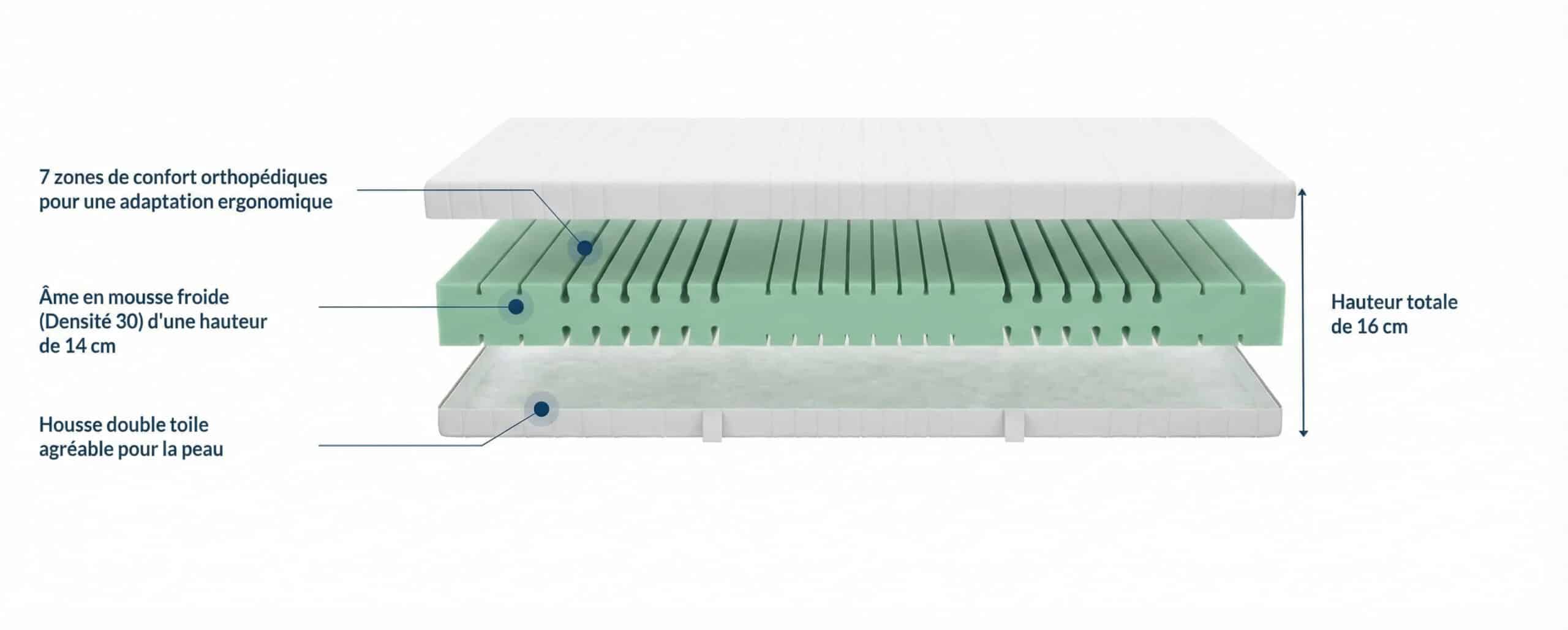- Noyau en mousse froide (RG40) d'une hauteur de 14 cm