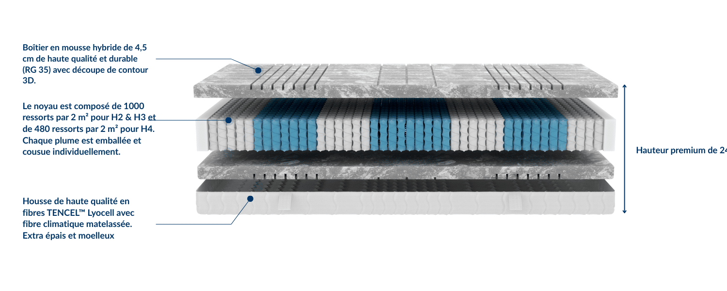 Confort de sommeil renforcé grâce à une hauteur premium de 24 cm